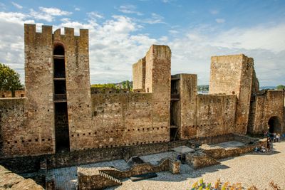 The fortress contains Gothic and Romanesque architectural elements, including the Donjon tower with an inscription in red brick chronicling its construction.