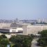 The Palace of Serbia spans 65,000 square meters in an H-shaped structure covered with white marble from the island of Brač and features metal window frames.