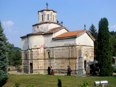 Built between 1377 and 1378, the monastery exhibits architectural elements of the Morava school with an inscribed cross plan and five-sided apses.