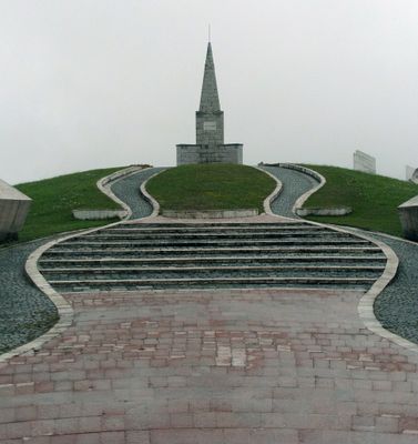 The central monument features a symbolic bullet hole design and contains an ossuary preserving the remains of fighters who defended the region.