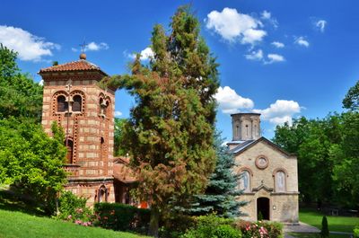 The monastery walls contain preserved frescoes depicting Despot Stefan Lazarević alongside noble dignitaries following the Battle of Ankara in 1402.