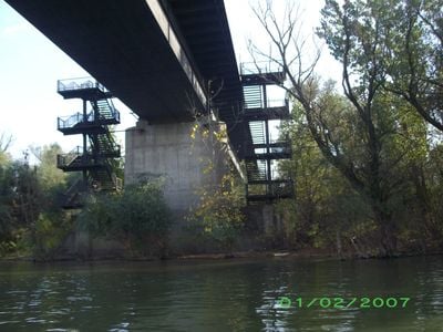 The Kovin Bridge extends across the Danube River with 18 spans, reaching a total length of 1,423 meters and featuring a central span of 171 meters.