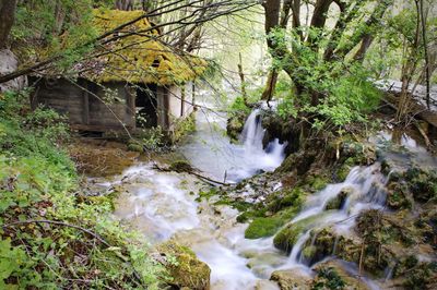 Taorska vrela springs emerge from a cave at the base of a 5-meter limestone plateau, creating cascading waterfalls that flow into the Skrapež River.