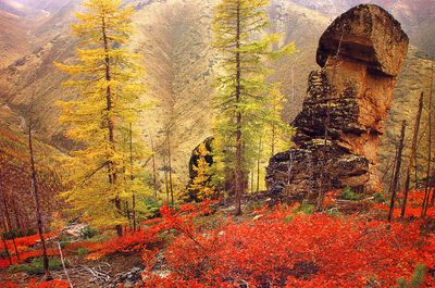 The Khanty-Mansi Autonomous Okrug extends over 523,100 square kilometers of the West Siberian Plain, containing dense forests, peat bogs, and grass marshes.