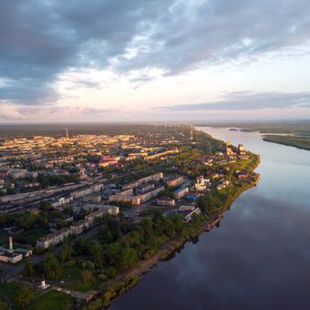 Kotlas is a city in the Arkhangelsk Oblast of Russia, located in the Kotlas Urban Okrug where the Northern Dvina and Vychegda rivers meet. The settlement sits at roughly 260 feet (80 meters) above sea level, with pine forests extending outward in most directions and transport infrastructure linking the area to nearby regions.