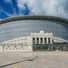 The Central Stadium features a large concrete structure with classical columns and historical walls, accommodating 27,000 spectators for sporting events and competitions.