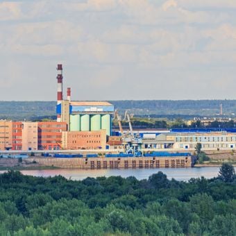 From Nizhny Novgorod's riverside, observers can view the entire industrial landscape of Bor spread across the opposite bank of the Volga River.