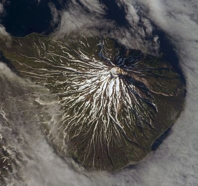 Fuss Peak, Active stratovolcano on Paramushir Island, Russia