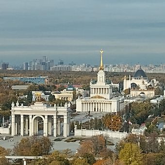 The Exhibition of Achievements of National Economy is a large-scale complex in Ostankinsky District with dozens of pavilions dedicated to different industries and technologies. The site extends across wide pathways and squares, connecting historic exhibition buildings with green spaces and public areas.