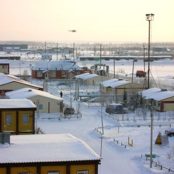 Nadymsky District spans across northern Russia with a subarctic climate, featuring extensive oil and gas industrial facilities throughout its territory.
