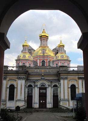 The complex includes multiple churches and chapels, with the main structure receiving extensive modernization between 1848 and 1851 under architect Egor Dimmert's design.