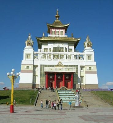 The temple, inaugurated in 2005, marks the revival of Buddhism in Kalmykia following decades of religious suppression during the Soviet period.