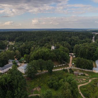 The settlement originated from Svyatogorsky Monastery, established in 1569 by Tsar Ivan the Terrible as a defensive structure to protect Pskov.