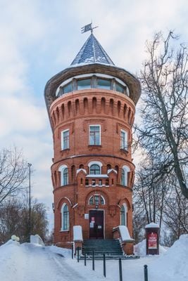 Built in 1868 with an English steam engine and tank for 8,000 buckets, the tower underwent reconstruction in 1912 under architect Sergey Zharov.