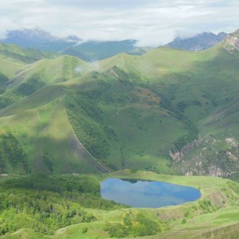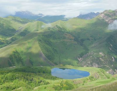 Lake Galanchozh, Protected mountain lake in Chechen Republic, Russia.