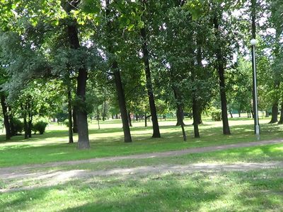 Viazemsky Garden extends across a substantial area of Saint Petersburg, featuring numerous walking paths surrounded by trees and seasonal plants.