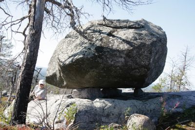 Mount Vottovaara rises to 417 meters above sea level, featuring scattered boulders across its 6 square kilometers rocky plateau in central Karelia.