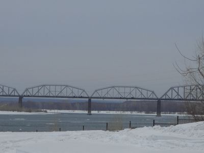 Komsomolsky Railway Bridge, Railway bridge in Novosibirsk, Russia.