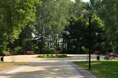 Komsomolsky Park stretches across an extensive territory with numerous walking paths, green spaces, and designated areas for outdoor activities and relaxation.