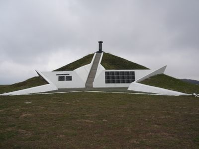 The Hill of Glory stands on Dolgorukovskaya Yayla, featuring monuments and memorial structures dedicated to military service members at coordinates 44.887583, 34.384208.