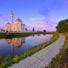The Sufiya Mosque features traditional Islamic architectural elements with geometric patterns and domes that characterize its main structure and minaret.