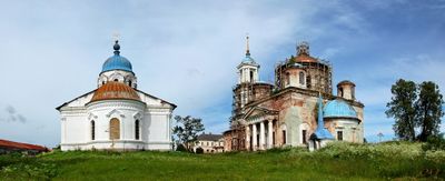 Nikolo-Terebensky Monastery is an Orthodox religious complex in Maksatikhinsky District, Tver Oblast, comprising multiple buildings spread across the rural grounds of Trużenik village. The site features churches, auxiliary structures, and residential quarters arranged across the landscape.