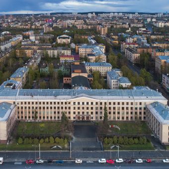 Petrozavodsk State University is a higher education institution in the city of the same name in the Republic of Karelia, bringing together multiple faculties and research facilities under one roof. The complex consists of numerous buildings spread across a larger site, connected by pathways and green spaces.