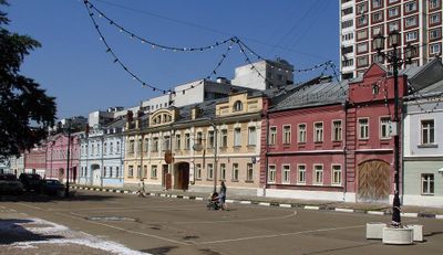 The two-story buildings from the 19th century line the streets of this neighborhood, creating a distinctive architectural ensemble in eastern Moscow.