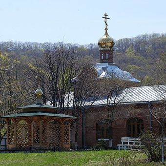 The monastery building originated as a regimental church of the 34th East Siberian Rifle Regiment, consecrated to Saint Seraphim of Sarov in 1914.