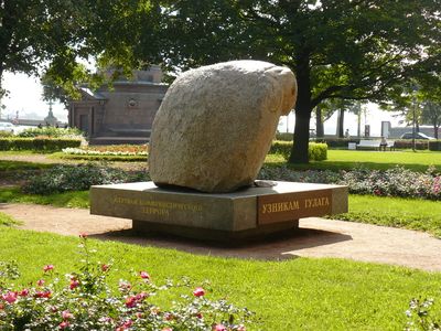 Solovetsky Stone in Saint Petersburg, Memorial stone at Troitskaya Square, Saint Petersburg, Russia