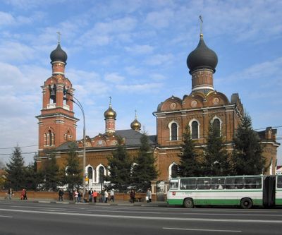 The Baroque structure stands at Second Novokuznetsky Lane with an exterior featuring curved lines and ornate decorative elements characteristic of 18th-century Russian religious architecture.