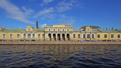 This architectural compound features multiple structures with neoclassical elements, arranged in a systematic layout within the central district of Saint Petersburg.