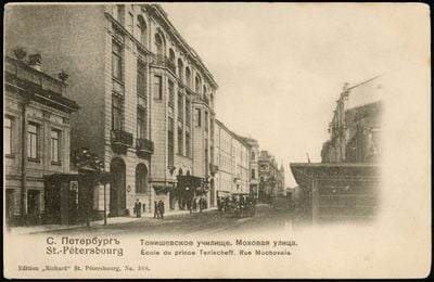 Instituto Tenishev is a school located at 33-35 Mokhovaya Street in a substantial building complex with features from the late 1800s. The structure contains educational spaces and architectural elements that reflect how learning institutions were designed in that period.