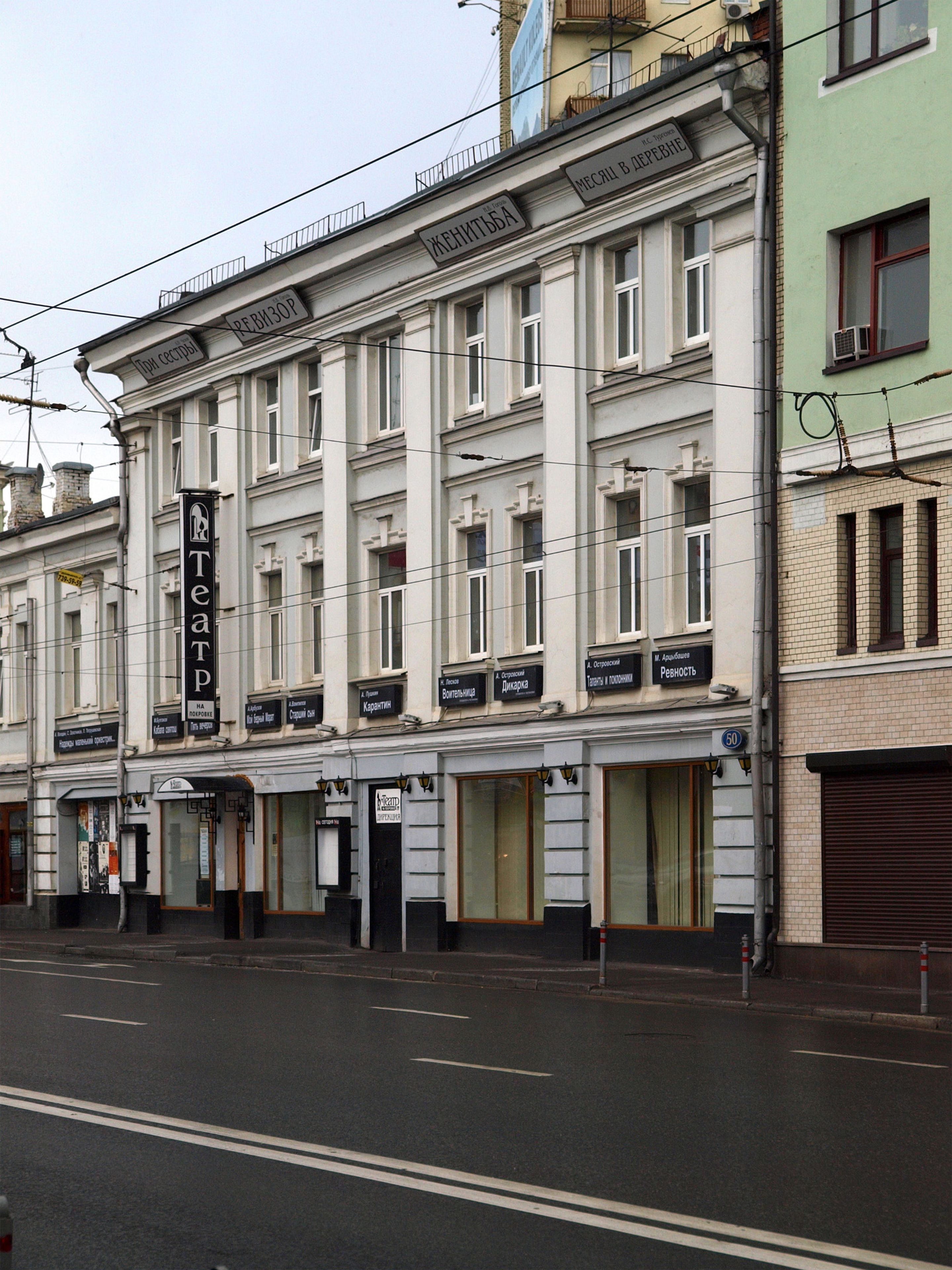 The Na Pokrovke Theatre stands within a traditional building at 50/2 Pokrovka Street, featuring multiple performance spaces and modern stage equipment.