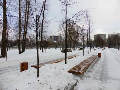 The Maryina Roshcha Park extends across several hectares of green space, featuring walking paths, recreational areas, and natural landscaping within Moscow's urban environment.