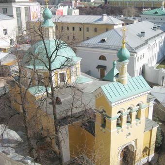 The religious building, now part of the Russian State Library complex, functions both as an active church and houses a nonstate educational institution.