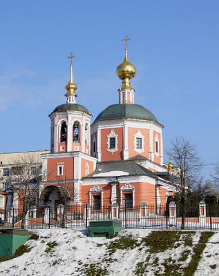 Holy Trinity Church in Troitskaya Sloboda, Eastern Orthodox church in Meshchansky District, Moscow, Russia.