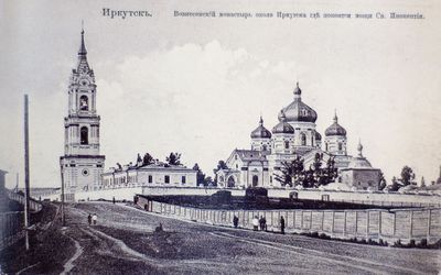The Ascension Monastery features traditional Orthodox architecture with multiple buildings distributed across its spacious grounds near central Irkutsk.