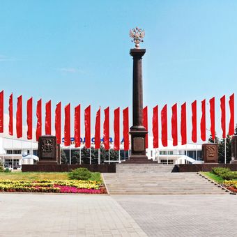 Stele “City of Military Glory”, Military memorial column in Pervomaisk district, Rostov-on-Don, Russia.