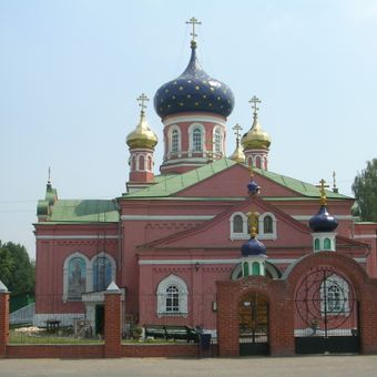 The Paraskevi of Iconium Church stands with its distinctive domes and traditional Eastern Orthodox architectural elements in the Shatursky District of Moscow Oblast.