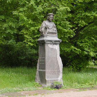 The original bust commemorates Mikael Agricola, who studied in Vyborg during the 1520s and later became the founder of written Finnish language.