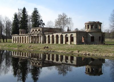 Architect Andreyan Zakharov designed this structure between 1798 and 1801, using local limestone and Pudosk tuff to create a grand pavilion for breeding birds.