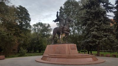 The 2012 installation of this bronze monument marked the recognition of Manas, a central figure in Kyrgyz folklore, within the Russian cultural landscape.