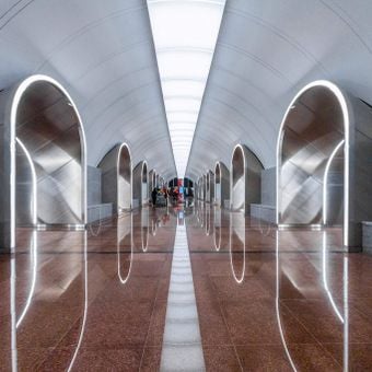 Rizhskaya, Metro station in Meshchansky District, Moscow, Russia.