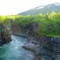 Abisko National Park is a mountain region in northern Sweden featuring alpine meadows, valleys, and diverse terrain spread across the landscape. The land rises near Torneträsk lake and extends to the Norwegian border.