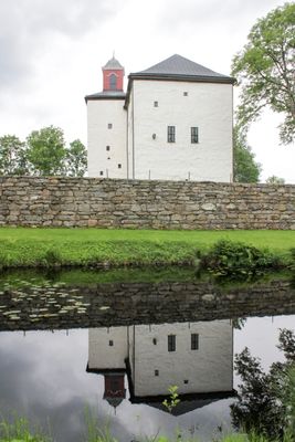 The stone fortress stands near Lake Åsunden, featuring a Renaissance interior with grisaille wall paintings and a baroque chapel on the ground floor.