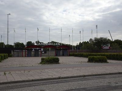 The stadium offers modern amenities for both athletes and spectators, including floodlights for evening matches at Solbergagatan 722 in Västerås.