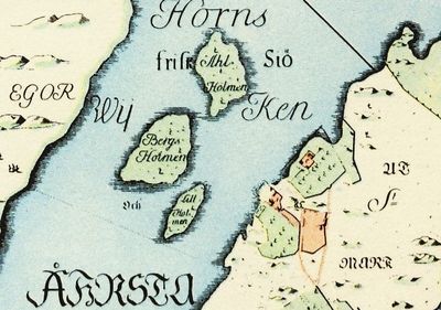 The Årsta bridges pass directly over Alholmen, the westernmost island, while the other two islands maintain their natural forest state.