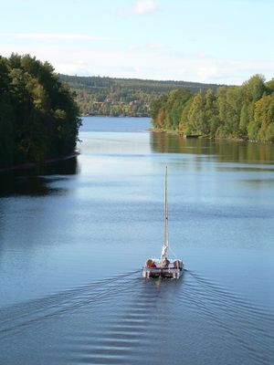 The river served as a crucial transportation route during Sweden's industrial development, supporting timber trade and local settlements throughout the centuries.