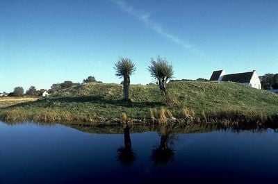 The ruins stand next to Saint Olof Church on the northern edge of Skanör, where visitors can examine the remaining castle hill and moat structures.